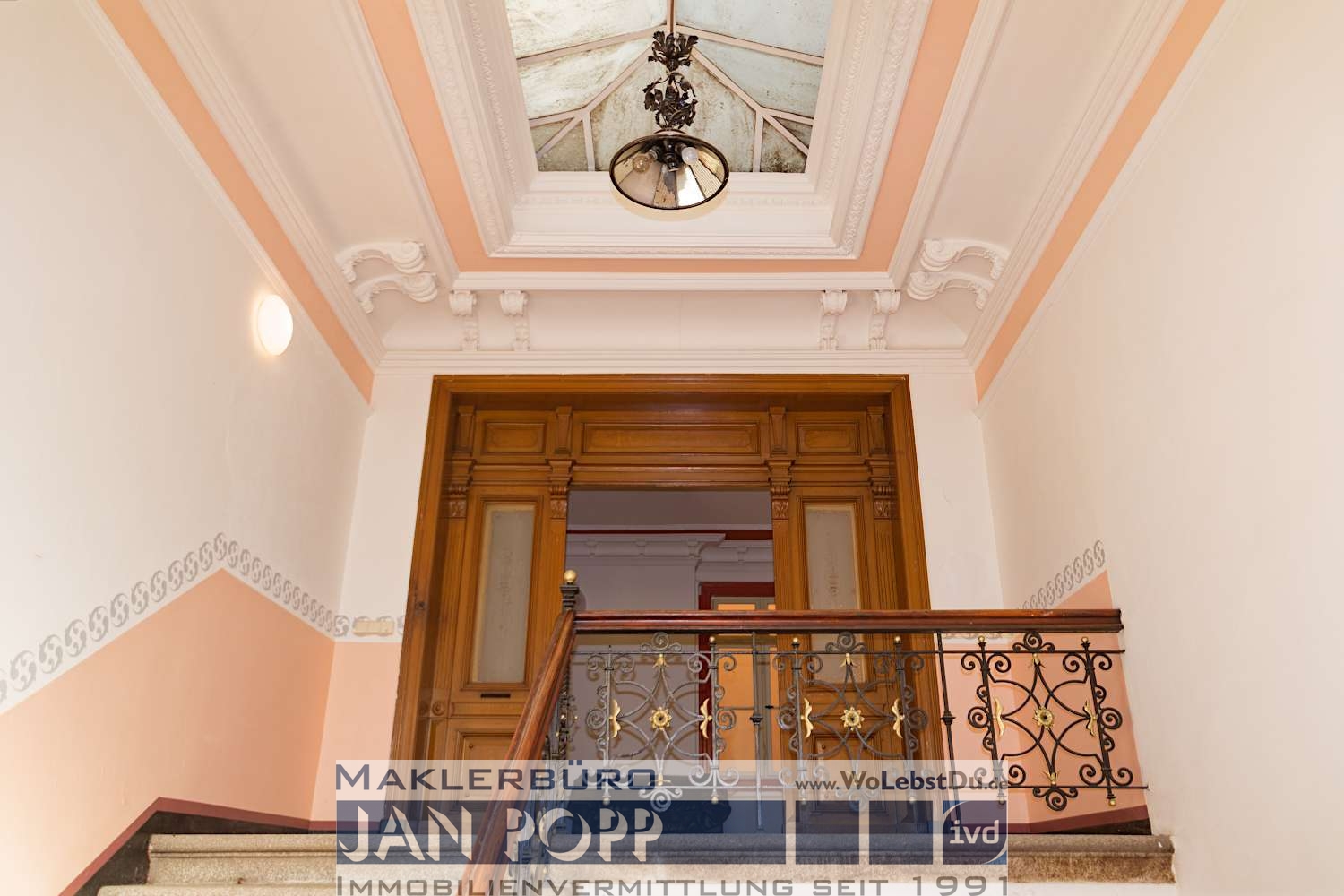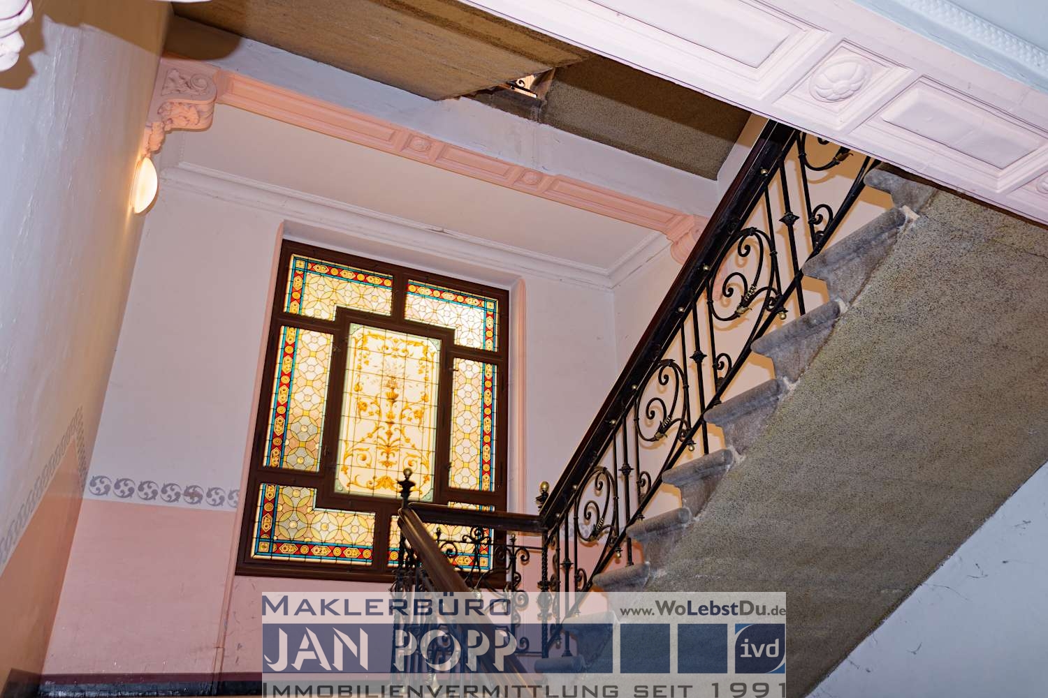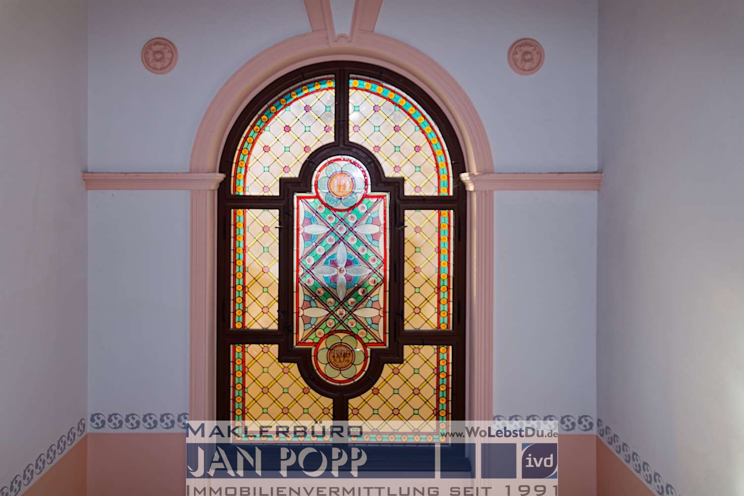 Die Wohnung bietet 72 m² Wohnfläche und befindet sich im 2. Obergeschoss eines gepflegten Gebäudes. Das Haus beeindruckt durch ein großzügiges Treppenhaus mit schmiedeeisernen Geländern und Bleiglasfenstern, welches zusätzlich durch ein Glaskuppeldach erhellt wird.