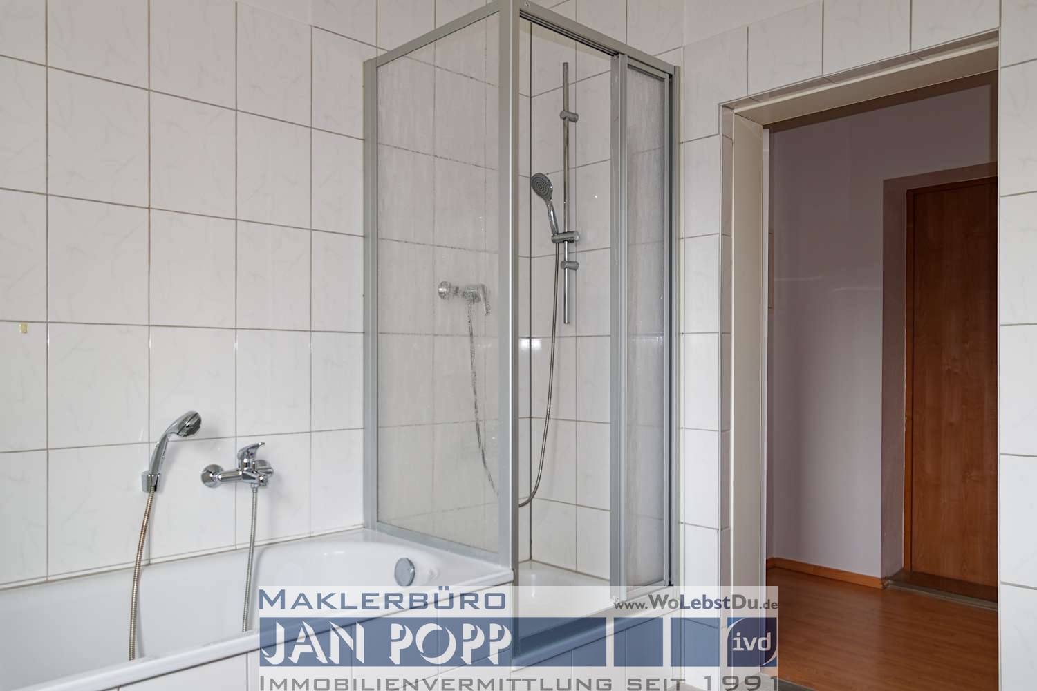 Die Wohnung verfügt über ein schönes Bad mit Dusche, Badewanne und Tageslicht.