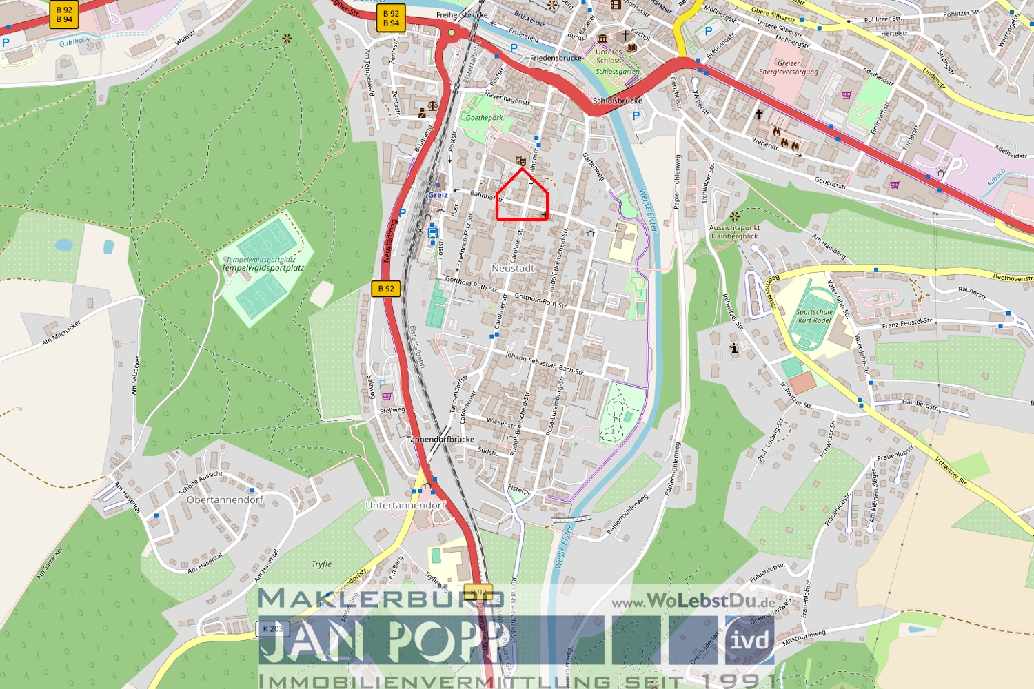 Auch wenn diese vogtländische Perle nicht direkt an einer Autobahn liegt, wird sie von zwei Bundesstraßen gekreuzt und liegt im Dreieck von den drei Autobahnen (A 9, A 72 und A 4), welche gut zu erreichen sind.