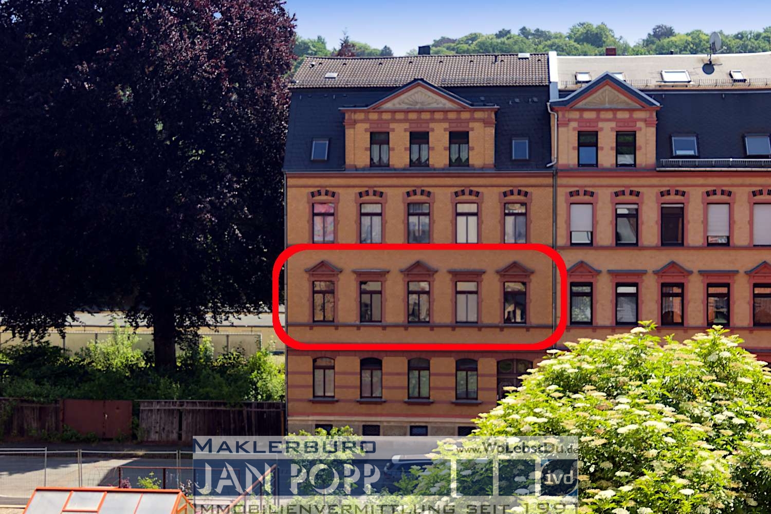 Die Wohnung befindet sich im 1. OG eines gepflegten Mehrfamilienhauses mit nur 4 Mietparteien in der Greizer Neustadt.
