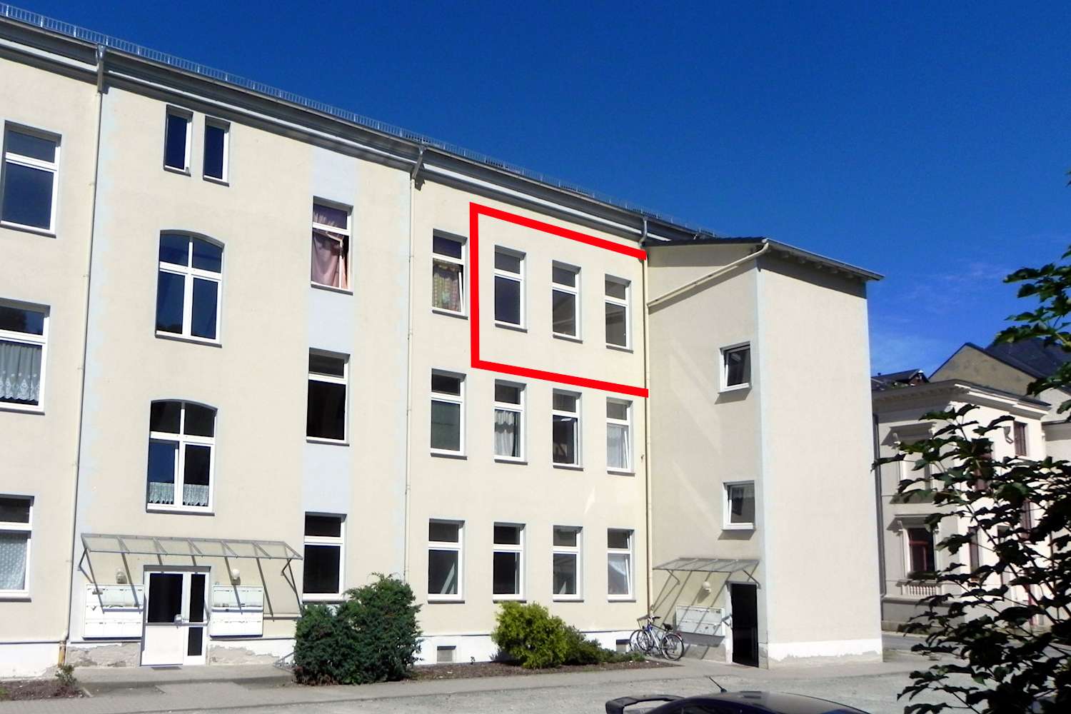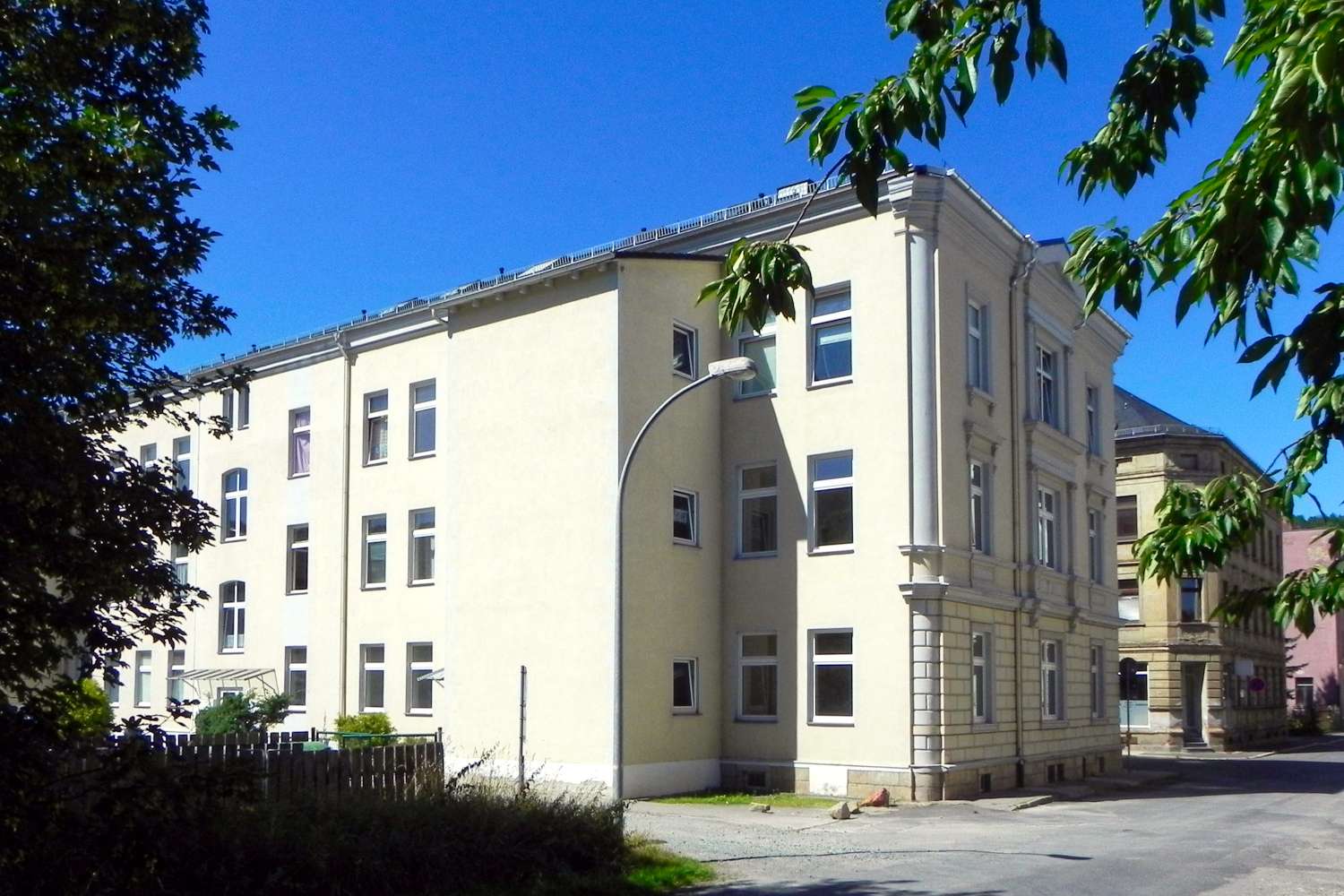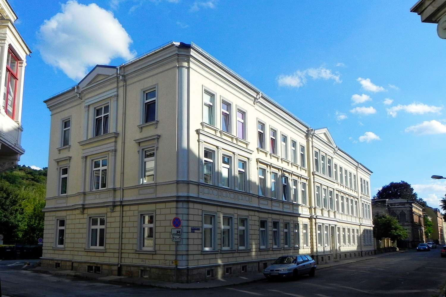 Das gutbürgerliche Mehrfamilienhaus aus der Gründerzeit befindet sich in der Greizer Neustadt.