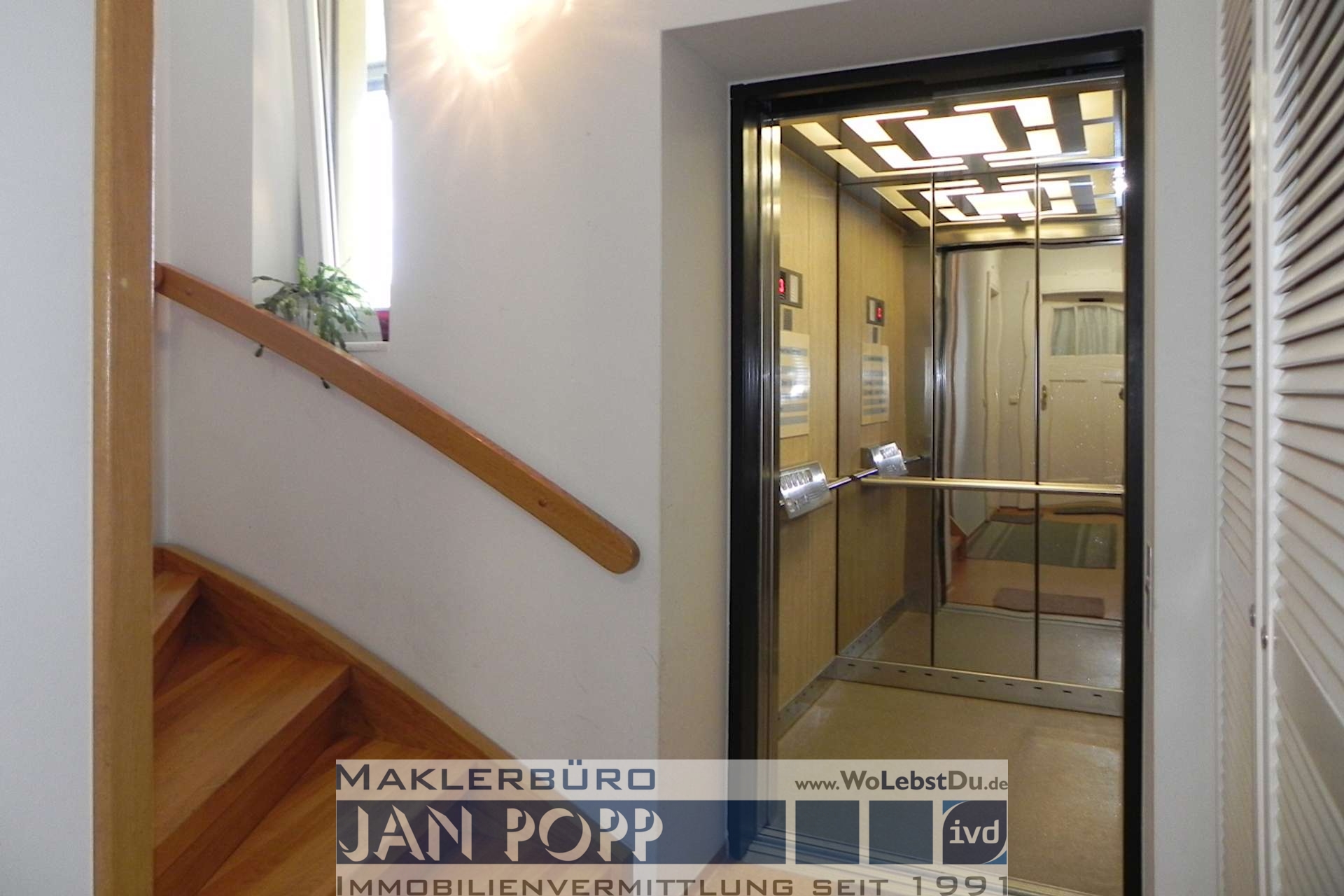 Dachgeschoss (4.OG): ein Lift bringt Sie bequem ins 3. OG, so dass fußläufig nur eine Etage über die Treppe zu bewältigen bleibt.