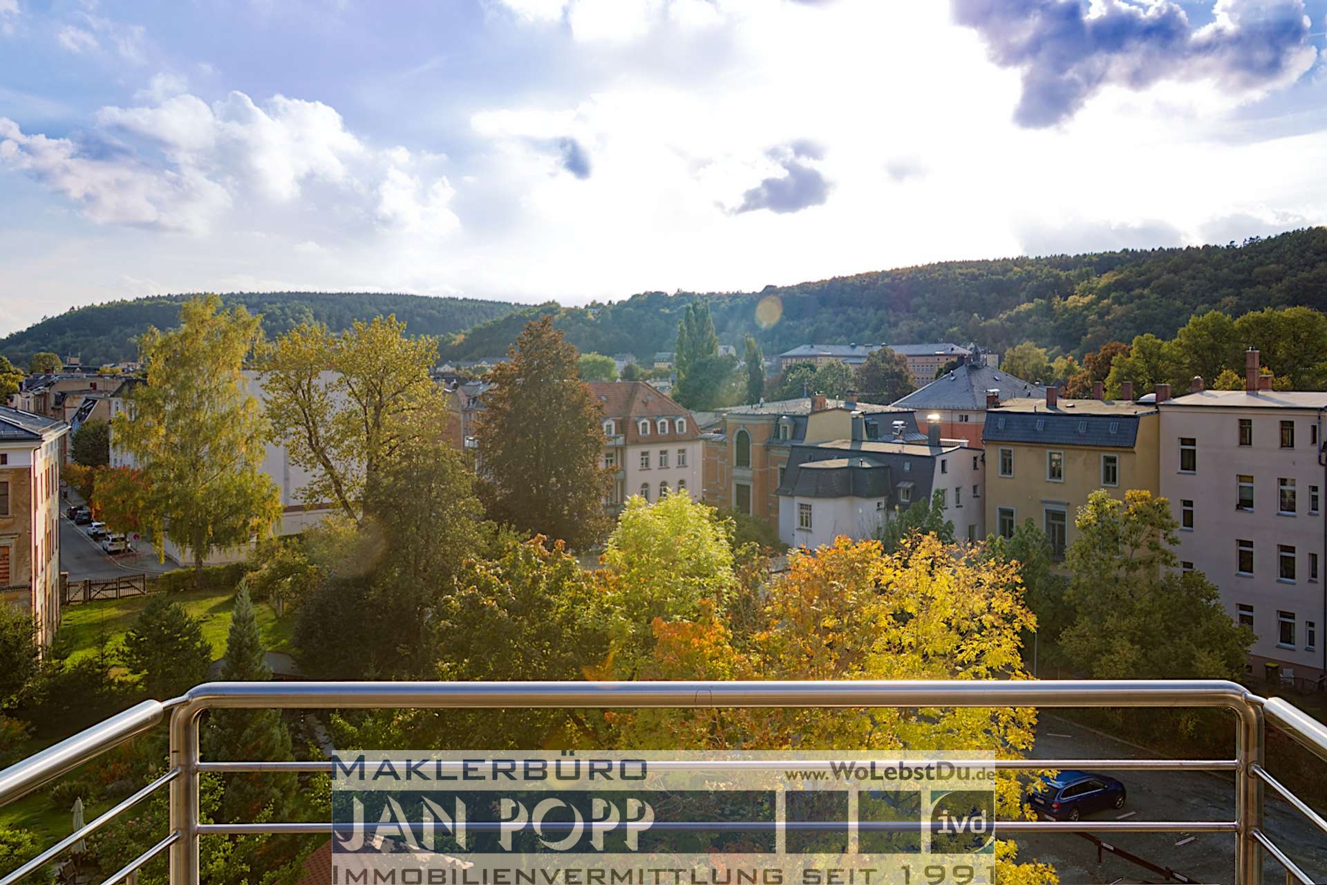 Die Wohnung befindet sich der verkehrsberuhigten Greizer Neustadt, jedoch in unmittelbarer Zentrumsnähe. Selbst Rollstuhlfahrer kommen von hier aus barrierefrei in die Innenstadt, oder zum Elsterdammweg entlang der Weißen Elster. Die Greizer Neustadt erfreut sich bezüglich der Wohnqualität immer mehr Beliebtheit. Der komplette Stadtteil ist eine verkehrsberuhigte Zone und verfügt zum Beispiel über einige Gaststätten, kulturelle Einrichtungen und Spielplätze. Hier entstand 2011 auch die neue Vogtlandhalle und am Elsterufer entlang verläuft ein Radweg.