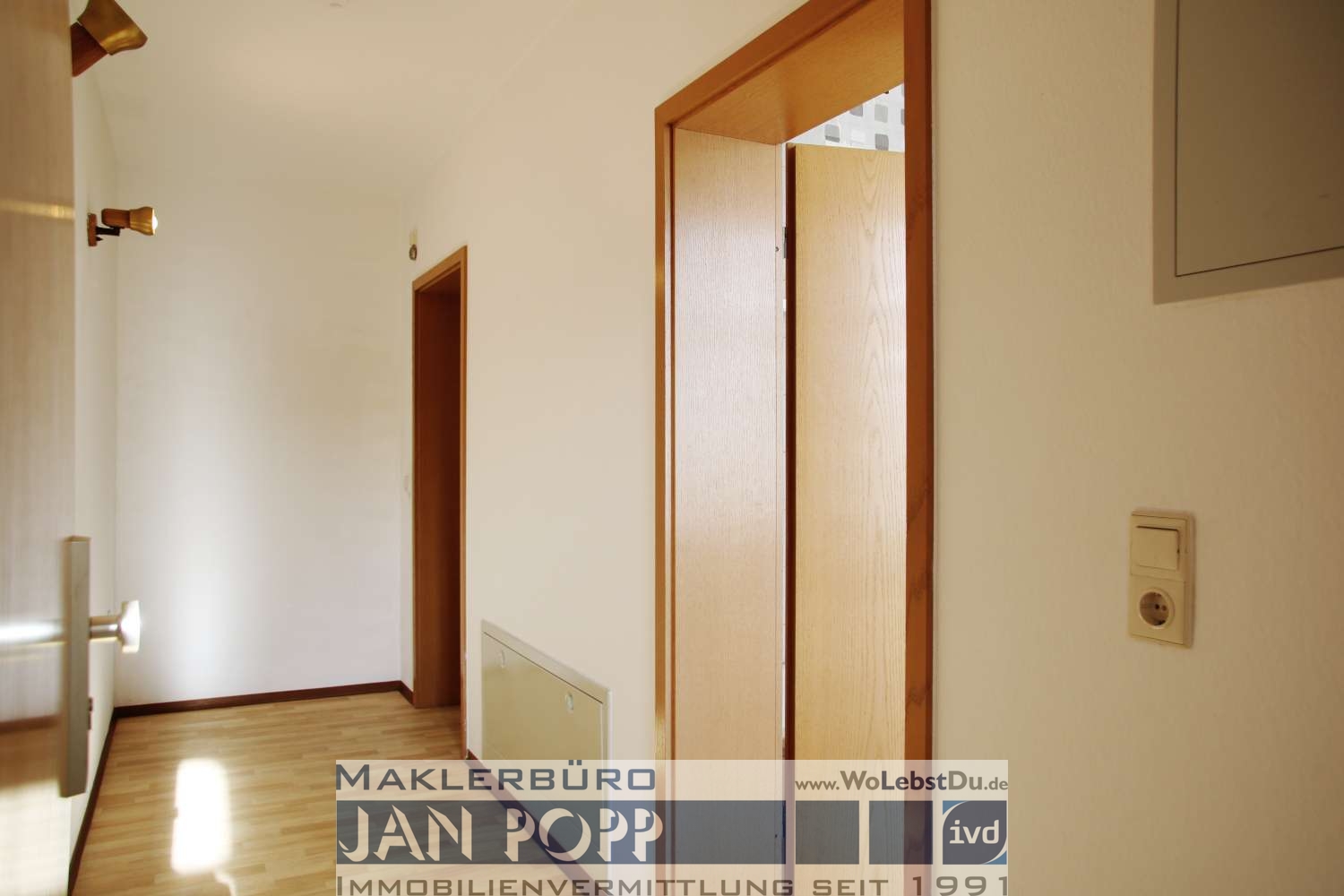 Zweiraumwohnung in Greiz-Gommla. Im Tageslichtbad befinden sich eine Badewanne, Waschbecken, WC und Waschmaschinenanschluss. Das geräumige Wohnzimmer bietet genügend Platz für eine Essecke, es ist ein Durchgangszimmer zum Schlafraum und zur kleinen Küche.