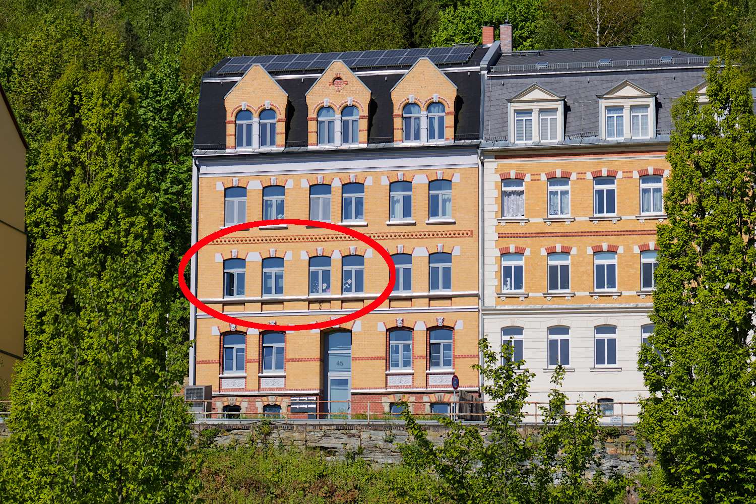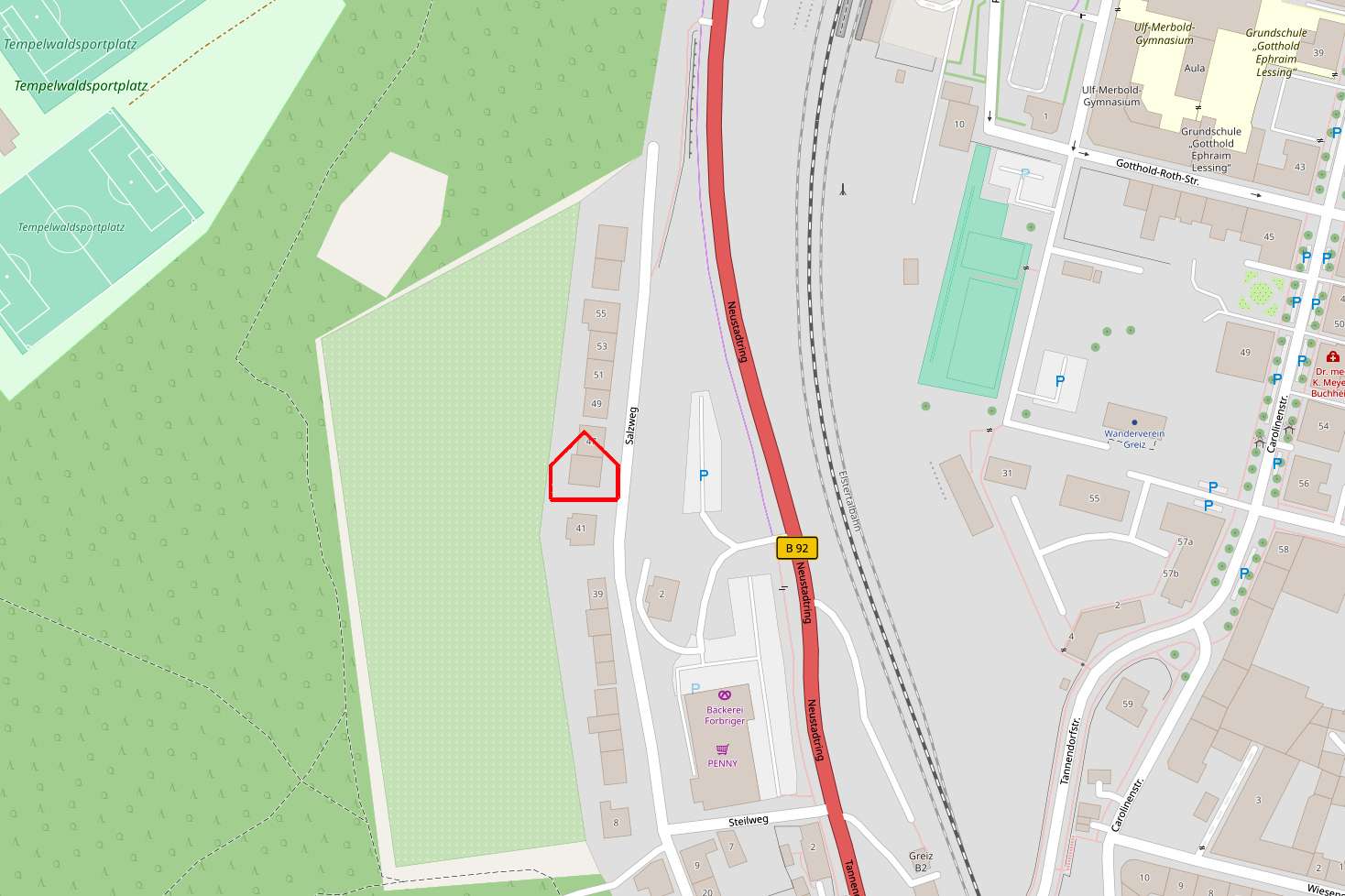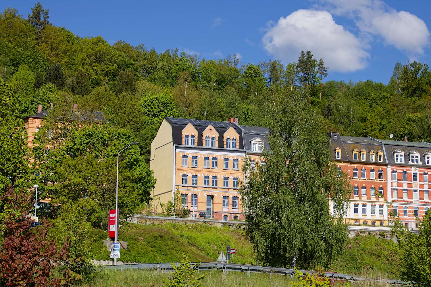 Das Anwesen aus der Gründerzeit befindet sich in der südlichen Vorstadt von Greiz in ruhiger Wohnlage. Ein Einkaufszentrum befindet sich in Sichtweite, das Anwesen grenzt direkt an den Wald.
