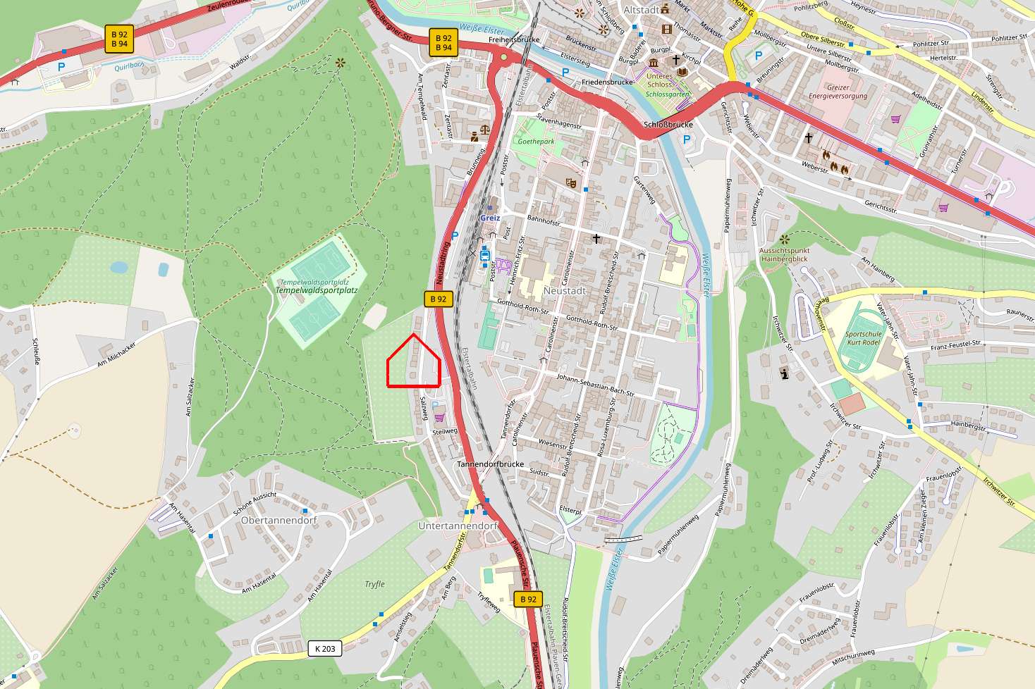 Das Stadtzentrum mit seinen Schlössern, Einkaufsmöglichkeiten, allen Geschäften des täglichen Bedarfs, Schulen, Kindergärten, Banken, Behörden, Ärzten, Gaststätten, Museen, Bus- und Bahnanbindung, der 2011 entstandenen Vogtlandhalle sowie dem sehenswerten Greizer Park ist in ca. 15 Minuten fußläufig zu erreichen.