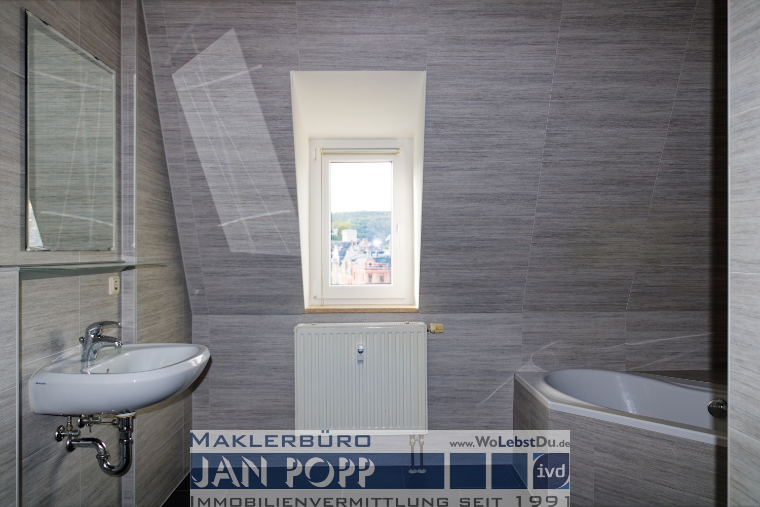 Auf dieser Etage befindet sich das Tageslichtbad mit Fußbodenheizung, Eckbadewanne, Duschkabine, WC und Waschmaschinenanschluss, sowie Schlafzimmer und Kinderzimmer. Eine weitere Wohnungstür führt auch auf dieser Etage von der Diele ins Treppenhaus. Als zusätzlicher Stauraum steht eine Bodenkammer zur Verfügung.
