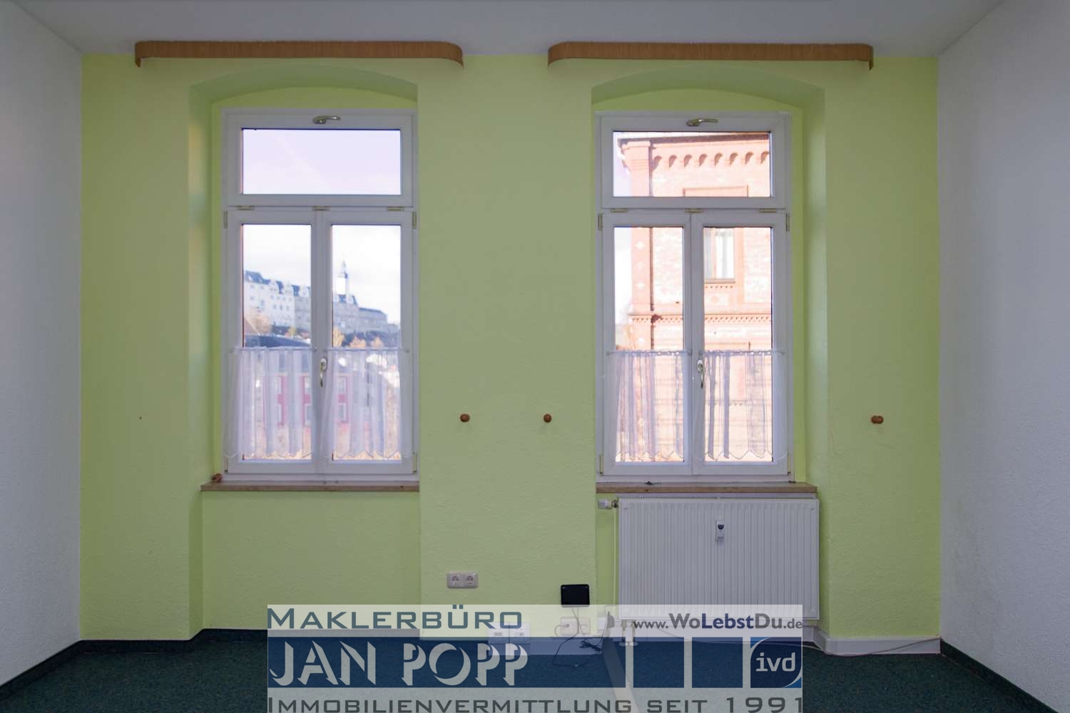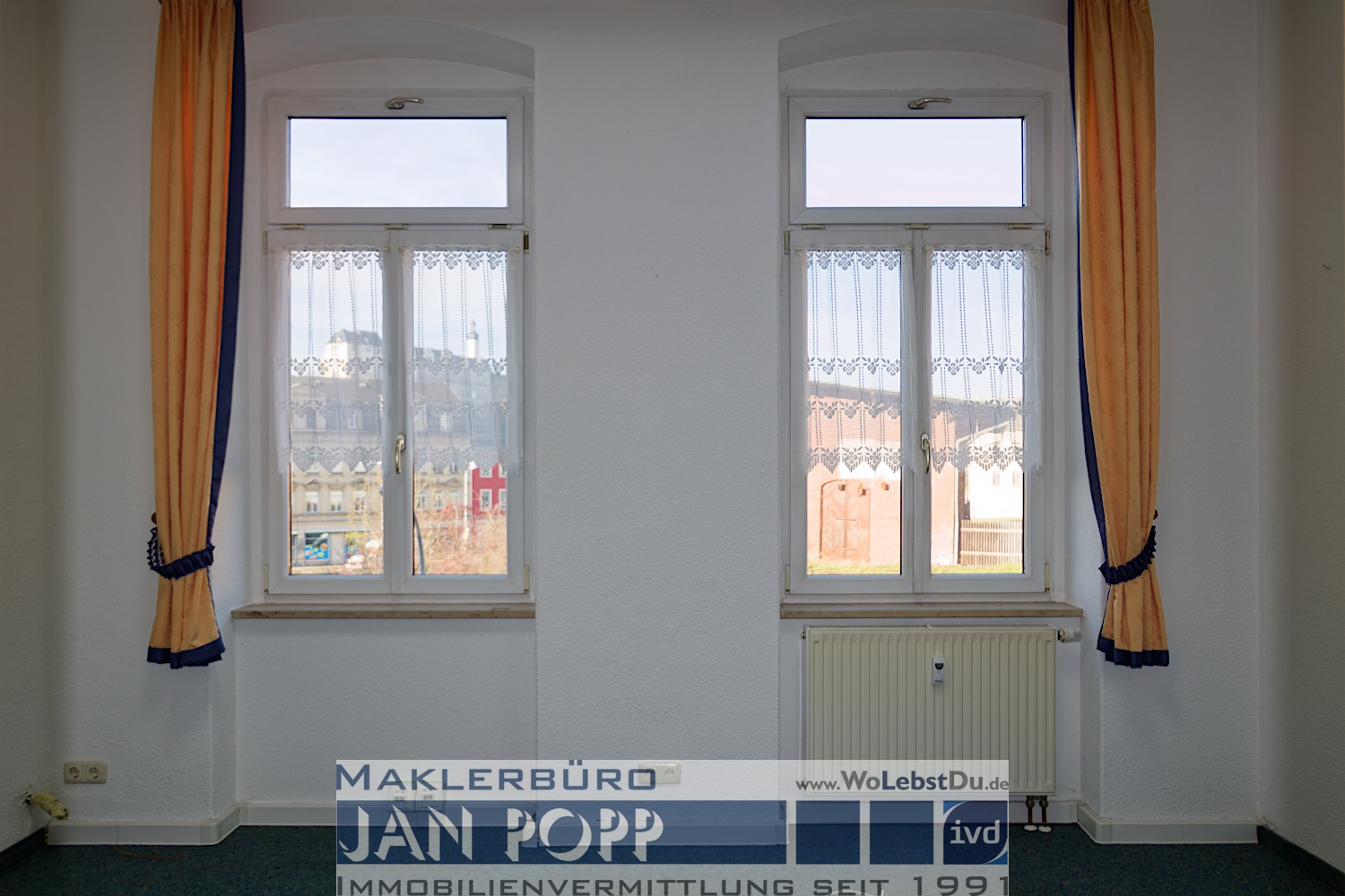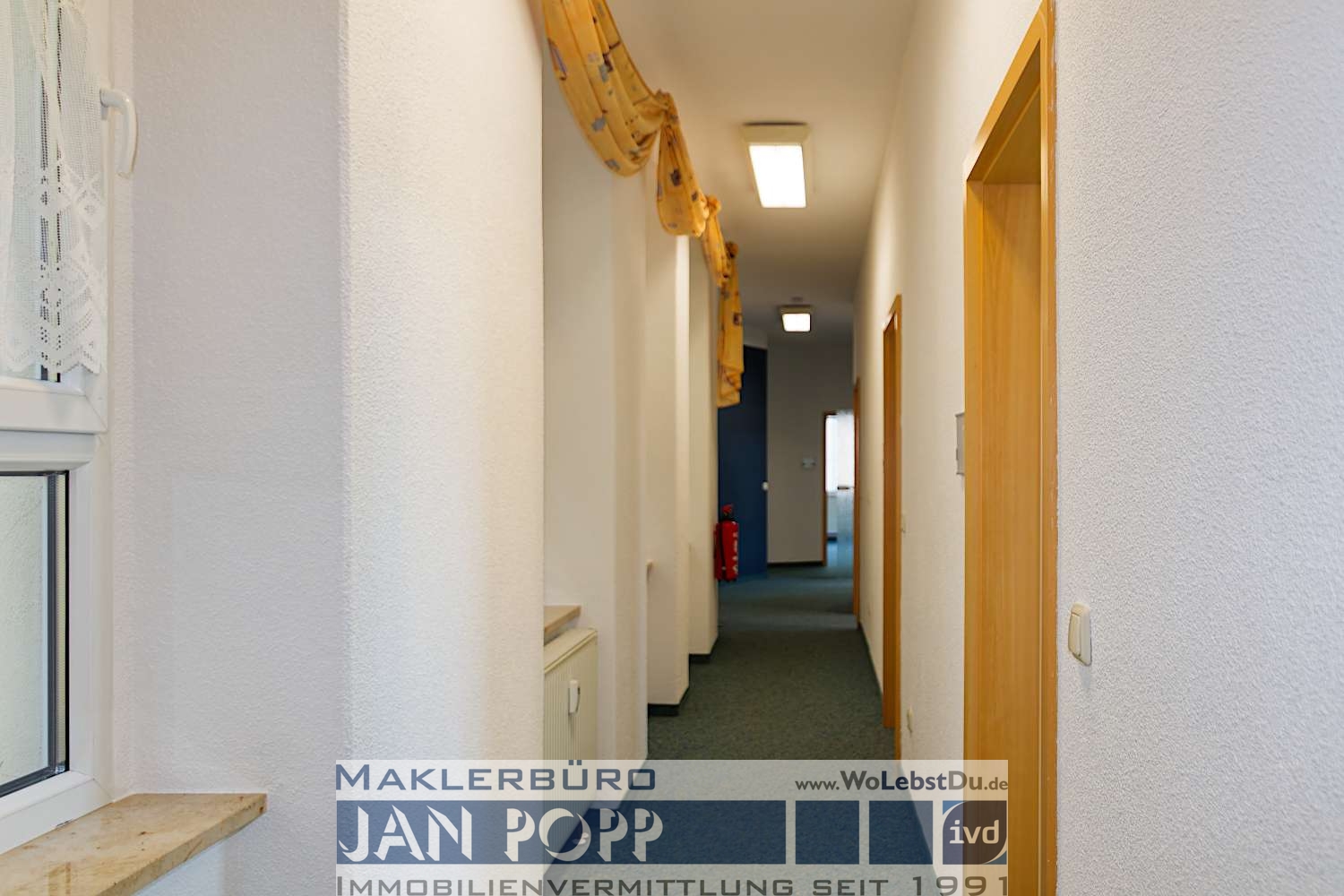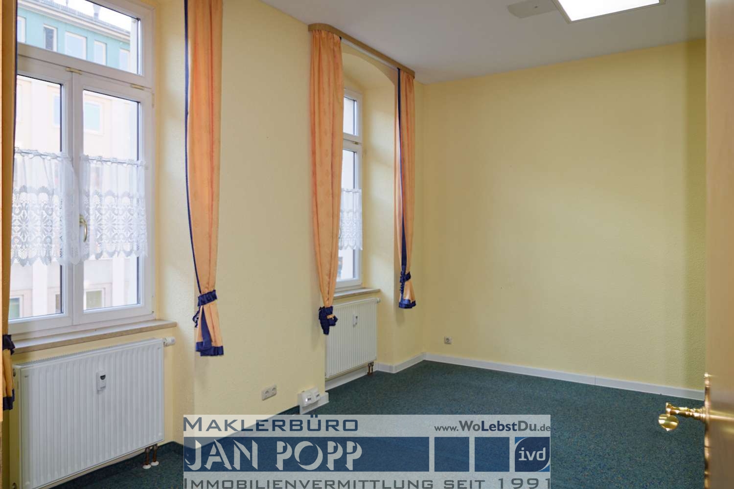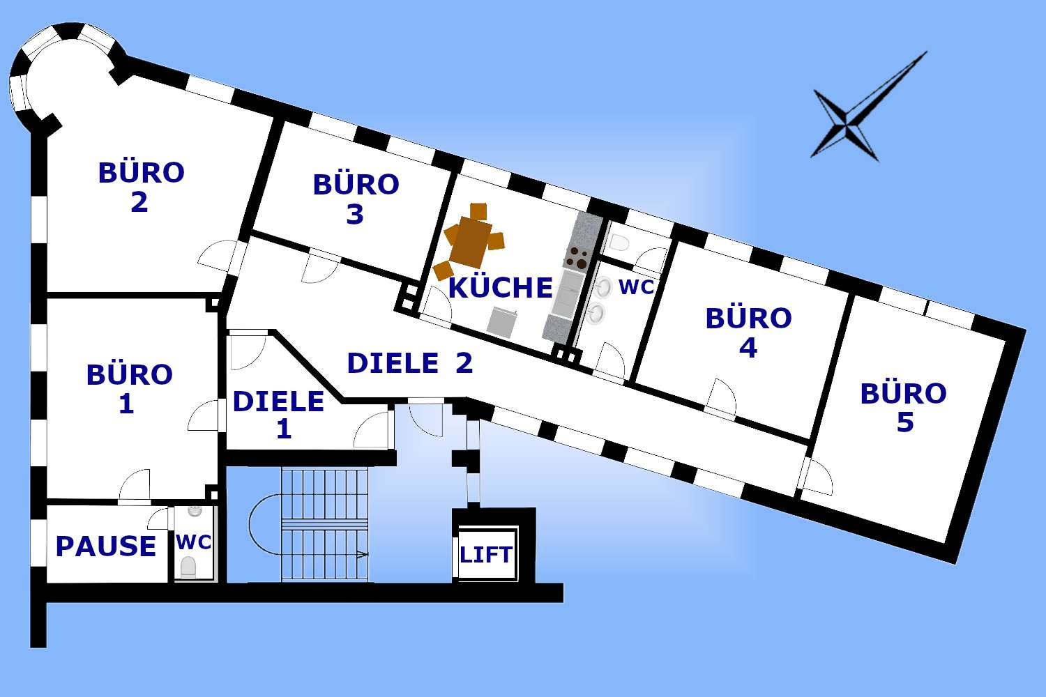 Büroetage im Zentrum von Greiz mit 5 Büros, Diele, Küche mit EBK, Pausenraum sowie 2 Toiletten. Die Etage befindet sich im 1. OG und sie ist mit dem Lift (ab Parterre) erreichbar. Die Etage verfügt über ein Netzwerk nach CAT7-Standard, einen Netzwerkschrank und in jedem Büro über mehrere Netzwerkports.