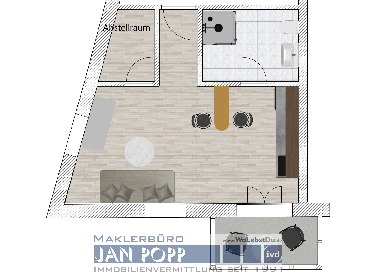 Der Balkon sorgt für entsprechenden Genuss der Wohnlage. Die sehr helle Single-Wohnung hat einen modernen Grundriss und ist mit Laminat ausgelegt. Die Wohnung wird renoviert übergeben.