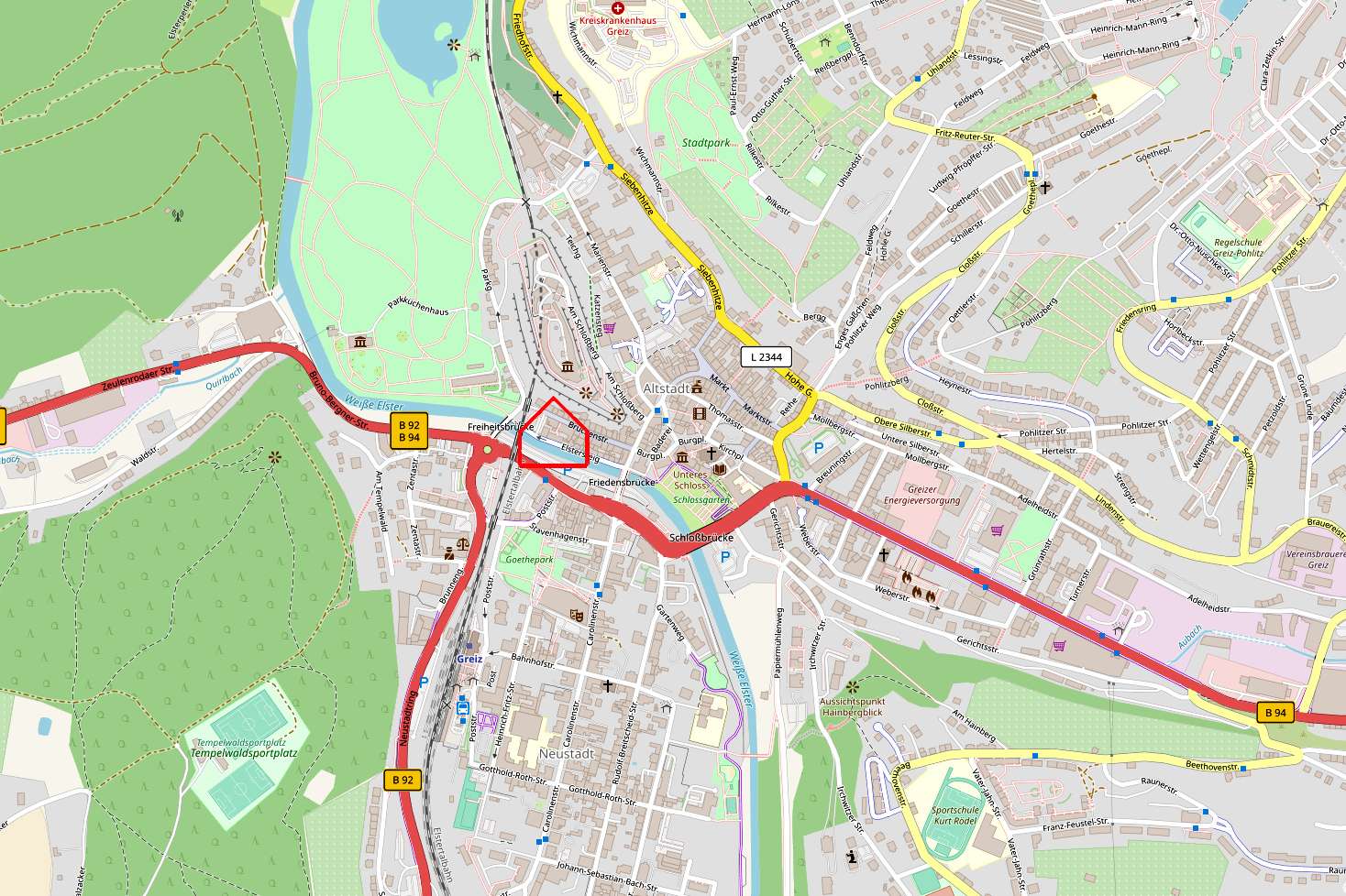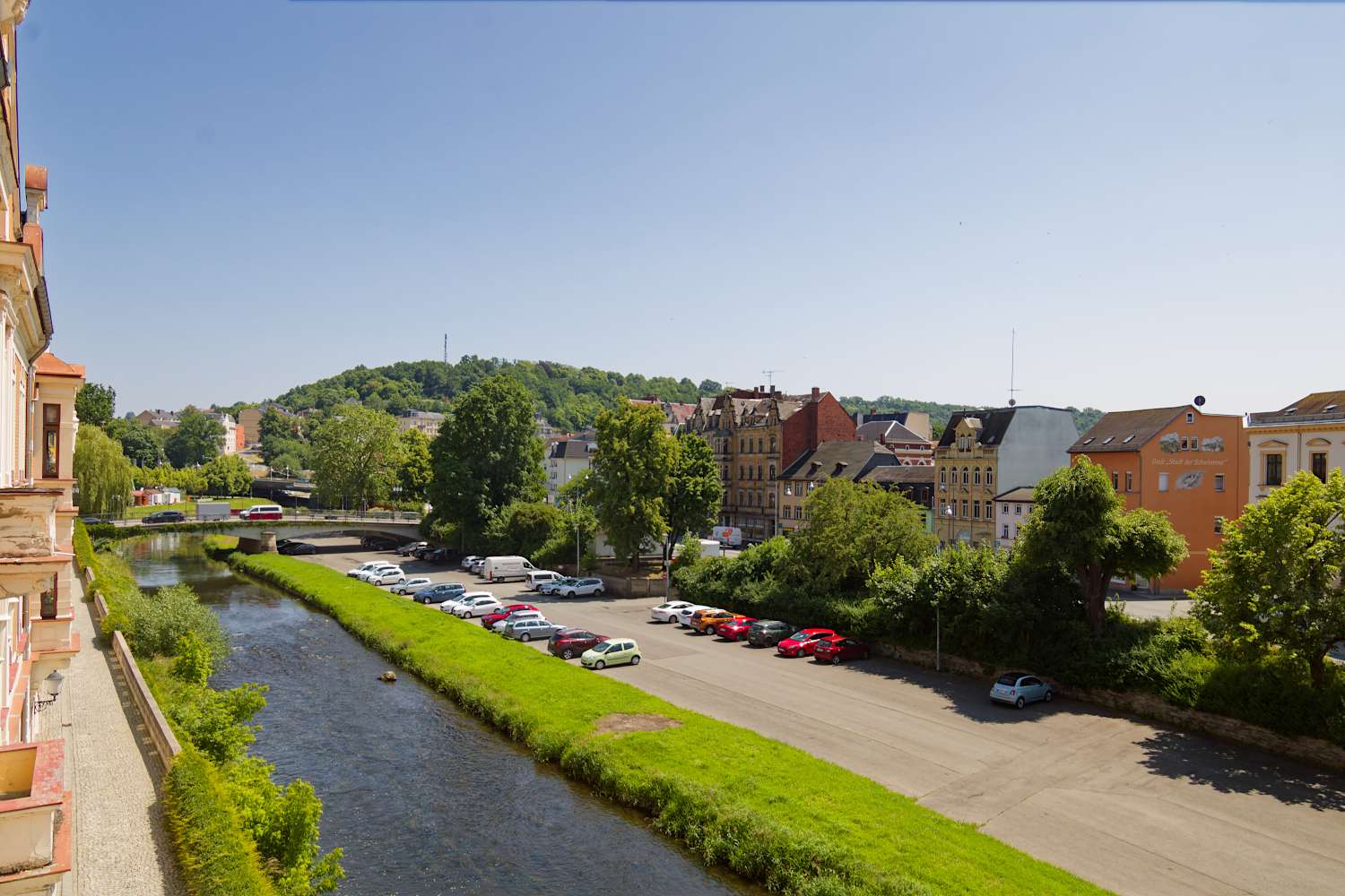 Sehr attraktive Lage der Kreisstadt Greiz: Das Anwesen befindet sich in einer zentrumsnahen Fußgängerzone, womit Sie den zentralen Bushalteplatz sowie reichlich Läden, Gaststätten, Dienstleister, Banken und Ärzte in Sichtweite haben. In unmittelbarer Nähe lädt auch der wunderschöne und überregional geschätzte Greizer Park zum Spazieren und Entspannen ein.