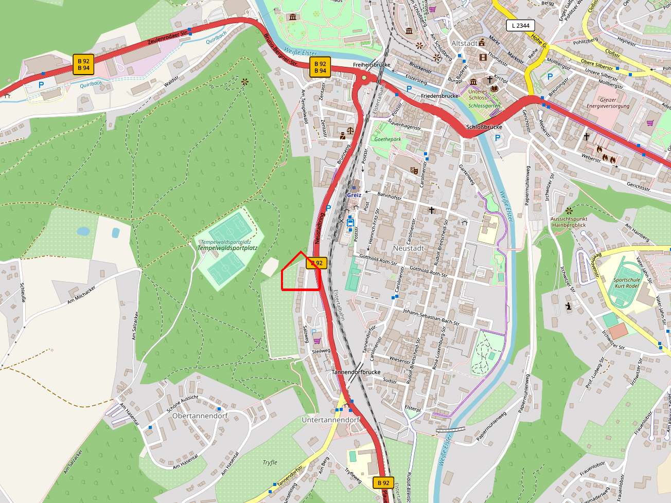 Das Stadtzentrum mit seinen Schlössern, Einkaufsmöglichkeiten, allen Geschäften des täglichen Bedarfs, Schulen, Kindergärten, Banken, Behörden, Ärzten, Gaststätten, Museen, Bus- und Bahnanbindung, der neuen Stadthalle sowie dem sehenswerten Greizer Park ist in ca. 10 Minuten fußläufig zu erreichen.